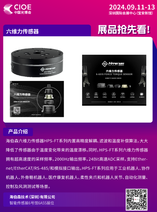 光博會期間, 【光+工業(yè)論壇】2024首屆具身智能人形機(jī)器人控制與傳感技術(shù)創(chuàng)新峰會將在深圳國際會展中心5號館舉辦,海伯森技術(shù)(深圳)有限公司應(yīng)邀參與此次會議,并將進(jìn)行“人形機(jī)器人與六維力傳感器”的專題演講。期待各位客戶前來參會,共同交流。