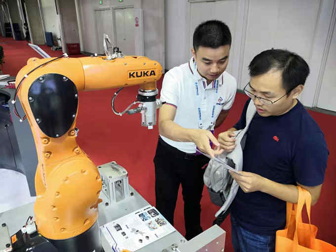 另一方面,則是把傳感器與機(jī)器人相融合,進(jìn)而實(shí)現(xiàn)人機(jī)協(xié)同。此次,海伯森把六維力傳感器安裝在庫(kù)卡機(jī)器人的末端,通過(guò)傳感器來(lái)控制機(jī)器人末端夾爪的力度,從而實(shí)現(xiàn)相關(guān)精密操作,例如精密裝配、柔性打磨等;同時(shí),現(xiàn)場(chǎng)還通過(guò)拖動(dòng)示教上演現(xiàn)實(shí)版機(jī)器人與人的零距離互動(dòng),真人拖動(dòng)機(jī)械手來(lái)實(shí)現(xiàn)相關(guān)操作,不僅讓現(xiàn)場(chǎng)的觀眾零距離體驗(yàn)到“人機(jī)協(xié)同”的存在,也深刻的感受到傳感器小小的身軀內(nèi)蘊(yùn)含的巨大的能量。