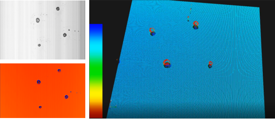 ● 檢測(cè)結(jié)果:3D線光譜可以清晰掃描出樣品表面細(xì)微的劃痕、缺失、異物等;測(cè)量中,電機(jī)可以達(dá)到的最大速度為12.4mm/s。