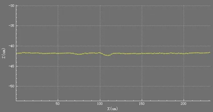 經(jīng)測量:畫線輪廓的高度差為33.86um