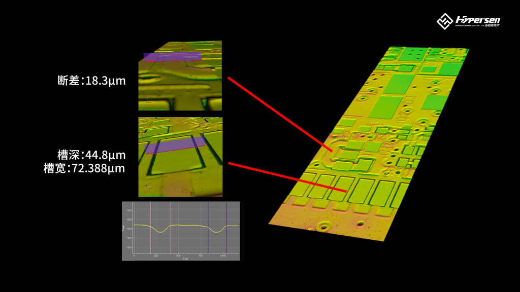 使用海伯森3D線光譜共焦傳感器HPS-LCF1000對樣品進行精密測量,可以獲取上圖信息。