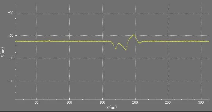 經(jīng)測量:畫線輪廓的高度差為33.86um